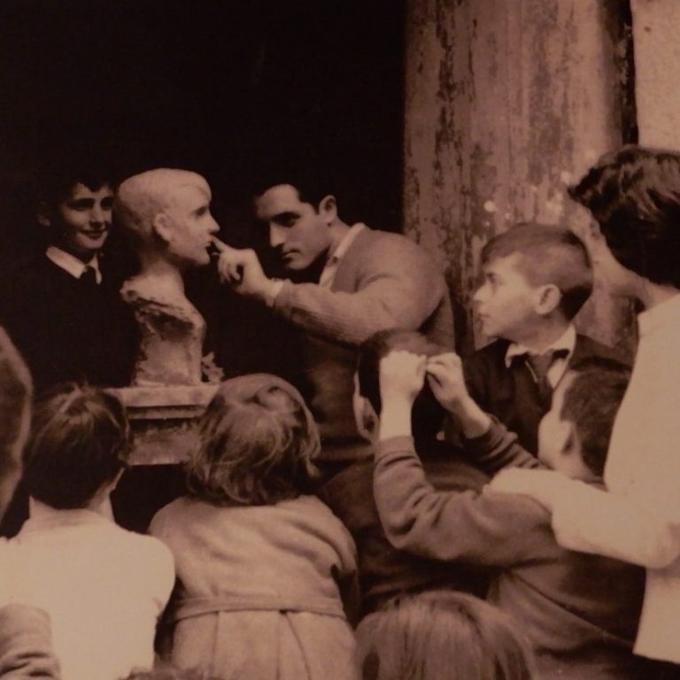 Ángel Barros con 17 anos modelando o busto dun rapaz en Redondela