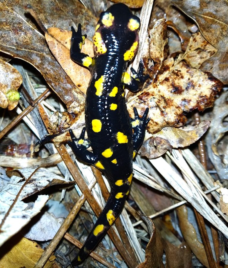 Fermosa cor negra con pintas amarelas, a nosa subespecie galega ten tamén pode ter pintas de cor avermellada. Gústalle saír nas noites frías e húmidas, coidado con pisala na escuridade! Aínda que é un anfibio os seus hábitos son terrestres, pero necesita ter a pel sempre húmida para poder respirar a través delas. Cando as temperaturas baixan moito comeza o seu letargo invernal.